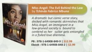 LANHAM, MD, U.S.A, August 20, 2021 /EINPresswire.com/ -- MISS ANGEL: The evil Behind The Law Vol 1, by Tchinda F. Mbuna, is now on amazon.com and other online retailers for purchase. The book is a dramatic but comic verse story, decked with romantic skirmishes that Miss Angel, an immigrant in a law-pruned society, is bound to contend as her suitor gets entangled in a foiled love dilemma.Tchinda F. Mbuna presents a riveting story full of intrigue, drama, and at its core, a love story for the ages, all in verse form, no less. The author writes in a unique and compelling style that draws readers in and keeps them coming back for more as his tale unfolds before us. The writing is strong, and the plot is well-developed, while the characters have an incredible depth that will leave you guessing their true motivations above all else.