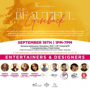 On Saturday, September 18, 2021, from 1-7 pm at The Meridian in Farmington Hills, Michigan. Le’Host Hair and Wigs along with their non-profit, “Love That Works will host “The Beautiful Give Back,” a health, beauty, and wellness fundraiser event to kick off their program “Stepping into Purpose” an entrepreneurship program. This year’s theme is increasing awareness and mending hearts one bag at a time. The goal is to raise $100,000, and part of those proceeds will ensure that 500 beauty/hygiene bags to the survivors, residents, and participants in the entrepreneurial program.
