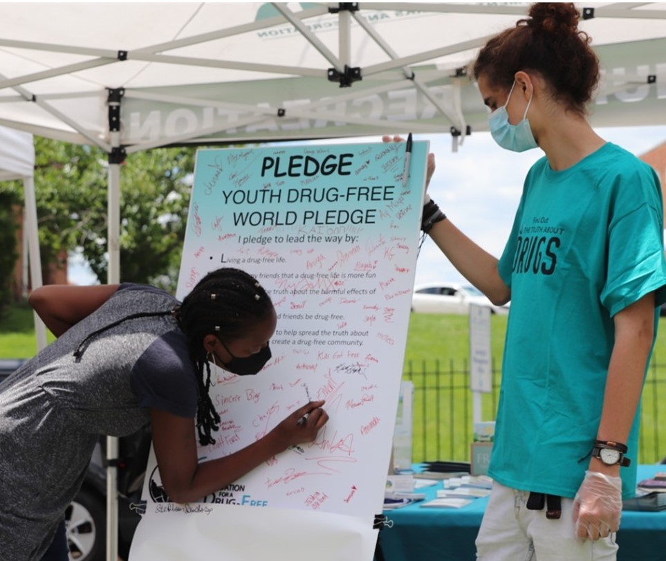 “One of the activities we have been doing this summer is our Drug-Free Pledge project where youth and adults pledge to be drug free in addition to helping educate people about heroin and the devastating and often deadly effects of opioids laced with fentanyl,” said Drug-Free World’s faith liaison Thalia Ghiglia. “I have found working with the police has given us an opportunity to reach deep into our neighborhoods to bring them the truth about drugs.”