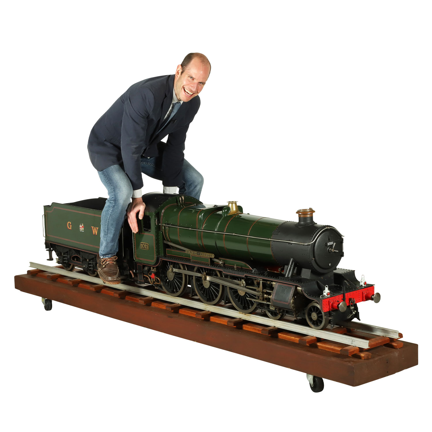 Finely engineered 7 ¼ inch gauge model of the Great Western Railway 4-6-0 locomotive and tender No. 1011 ("County of Chester"), rebuilt and reboilered (estimate: CA$15,000-$20,000).