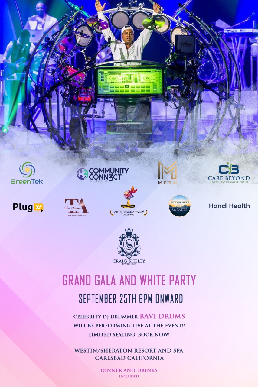 "Our partners are super excited to raise funds for charities thru a helicopter ball drop on September 24th at the Crossings Golf Course in Carlsbad while celebrity DJ Ravi Drums, infamously known for his performances at the Oscars with Oprah, Brittany Spears, Slumdog Millionaire, worked with Pitbull, Justin Bieber and many other A list celebrities will be electrifying the stage at our Grand Gala on September 25th at the Westin Resort and spa"