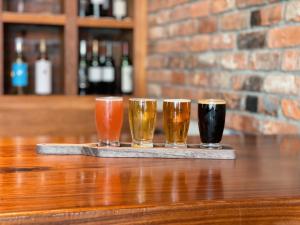 The venue seats 90 patrons dispersed amongst two inside rooms, a front sidewalk patio and a back beer garden (set to open by late September). Current operating hours are 4:00pm-12:00am, Friday and Saturday and 3:00pm-11:00pm, Sunday, Wednesday and Thursday; the taproom is closed Monday and Tuesday. In addition to on-site dining, online ordering is currently available.
