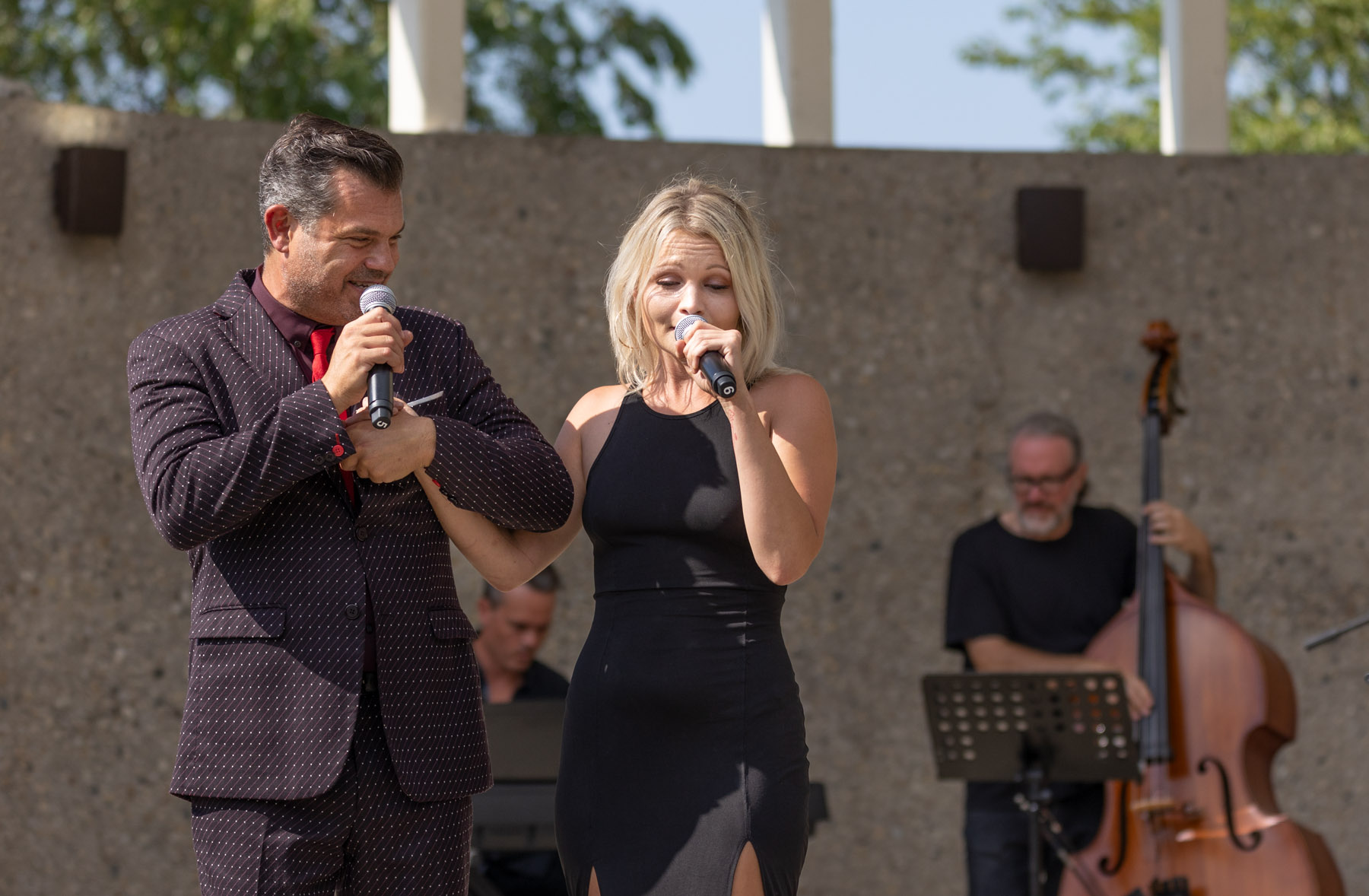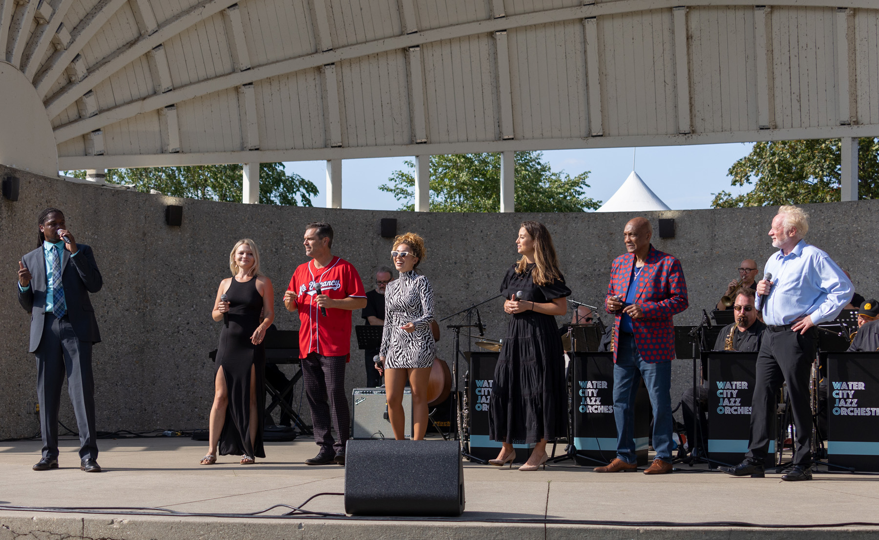 The free summer fun event featured classics from the “The Great American Songbook,” performed by an all-star cast backed by Wisconsin’s Water City Jazz Orchestra on the park’s bandshell. “Saturday Night Live” alum Joe Piscopo kicked off the show performing a Frank Sinatra-style version of “The Star-Spangled Banner” as a salute to active duty and military veterans, police, fire, and first responders in attendance. Piscopo continued his set with Count Basie-style versions of “Pennies From Heaven” and “Fly Me To The Moon,” as well as “Sing, Sing, Sing,” with Piscopo himself behind the drum set.