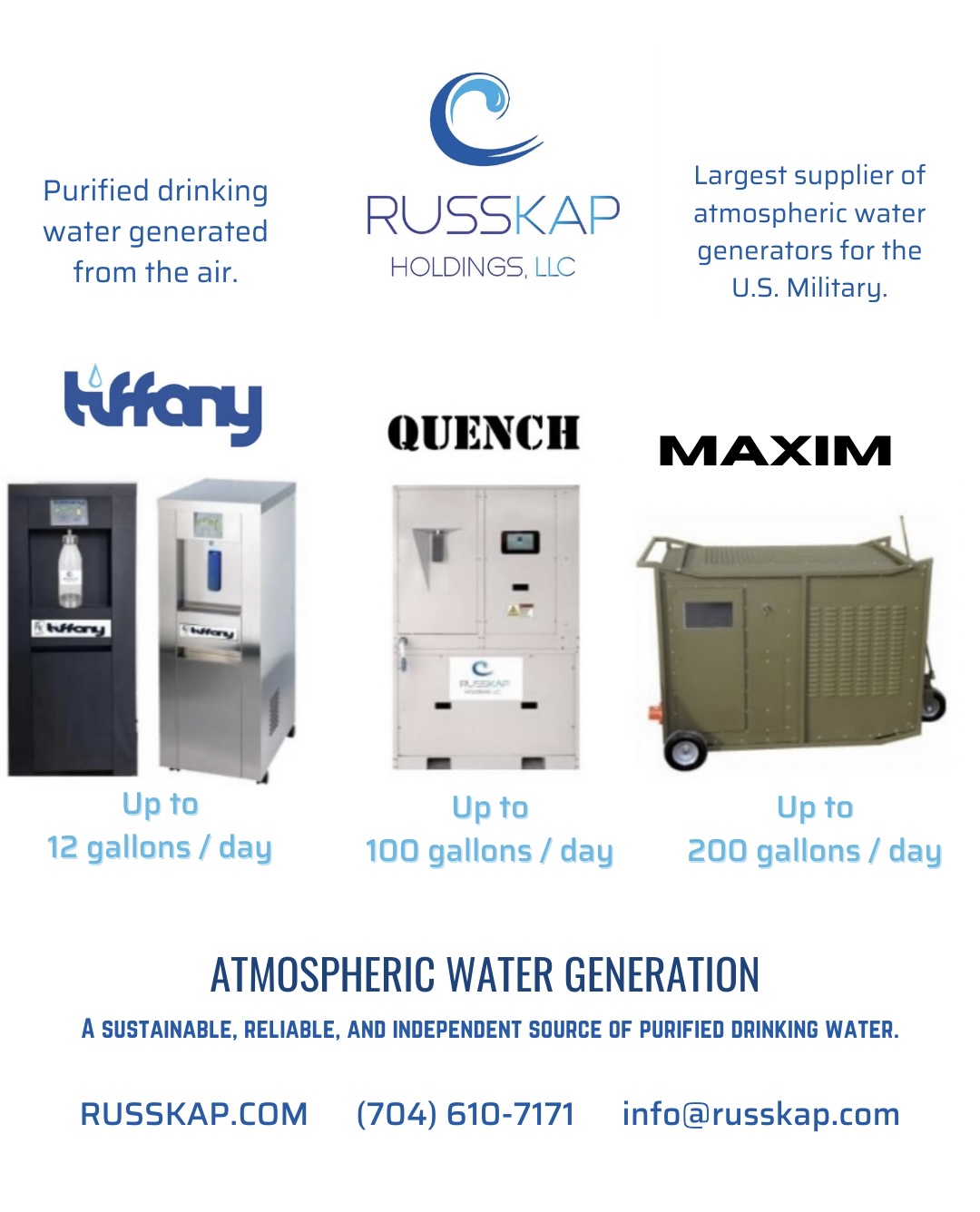 RussKap Announces New Atmospheric Water Generator (AWG) Purchases from the U.S. Department of Defense for Pacific Bases