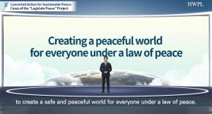 Die Bemühungen von HWPL zur Friedenskonsolidierung, rechtliche Grundlagen und internationale Normen für den Frieden durch die Verbindung globaler Akteure zu schaffen, verkörpern sich in ihren Bemühungen, das Völkerrecht für den Frieden durch die Ausarbeitung der Deklaration des Friedens und der Beendigung der Kriege (DPCW) zu unterstützen.