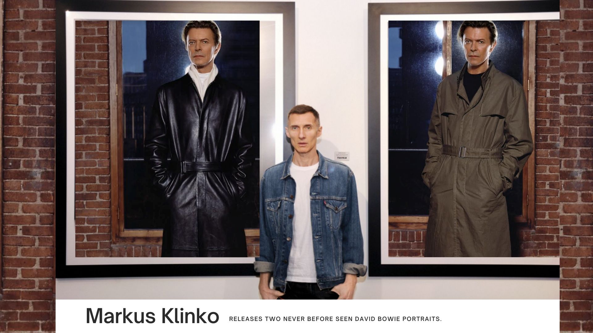 NEW YORK, NY, UNITED STATES, September 20, 2021 /EINPresswire.com/ -- Award-winning photographer MARKUS KLINKO is celebrating the 20th anniversary of his iconic collaboration with David Bowie with a series of art gallery exhibitions, opening in Munich, Toronto, Vienna, London and Dubai.For the occasion, Markus will also release two previously unseen works of Bowie, in both color and black&white limited editions in various sizes.