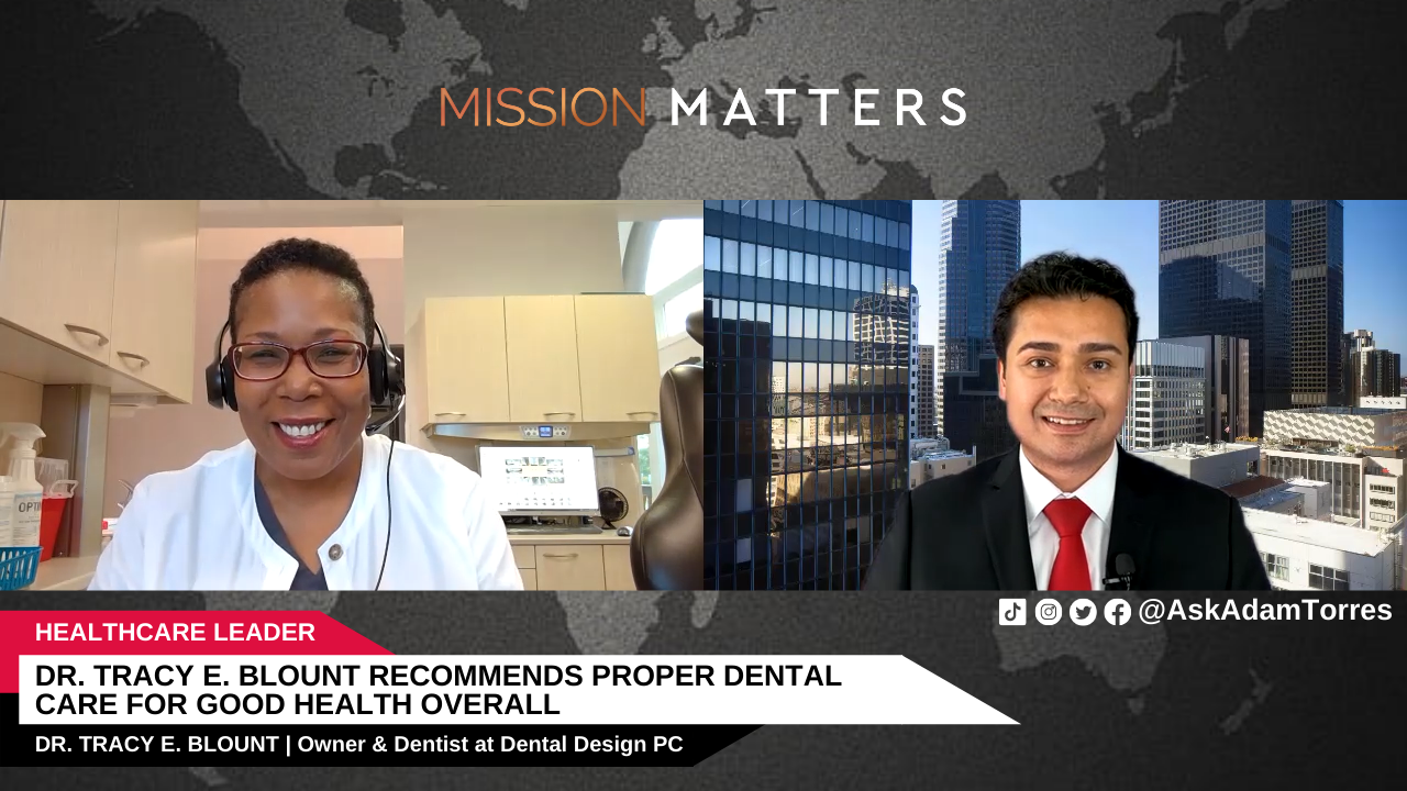 Dr. Tracy E. Blount, the owner and dentist at Dental Design PC was interviewed in the Mission Matters Business Podcast by Adam Torres.