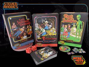 LAKE FOREST, CA, UNITED STATES, September 22, 2021 /EINPresswire.com/ -- Cryptozoic Entertainment, leading creator of tabletop games, trading cards, and collectibles, today announced the September 28 release of three games based on the work of Steven Rhodes: Let’s Dig for Treasure, Let’s Summon Demons, and Don’t Talk to Strangers. Rhodes is an artist best known for his offbeat reimagining of children’s activity books from the 1970s and 1980s. Reflecting the comical retro worlds in the games, the titles hail from Dynomite Games, an old-school sub-brand of Cryptozoic.Each 2-6 player game features fast-paced, easy-to-learn gameplay with very little setup time, while offering hidden depth to satisfy hardcore gamers. Following a successful Kickstarter campaign in late 2020, the games will be sold at Spencer’s and hobby stores worldwide in time for Halloween and the holiday season.
