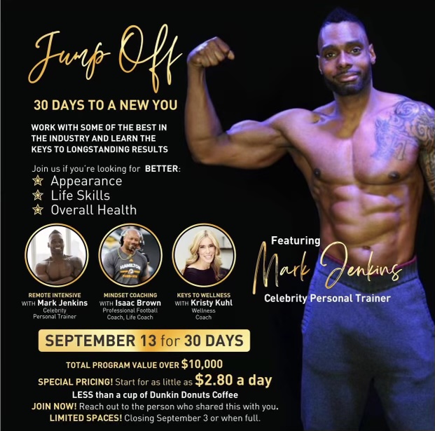 “The Jump Off” began three weeks ago but will be going on for the next three months. Grab your spot today for a better appearance, life skills, and overall health. For more information regarding “The Jump Off” 30-day challenge or to learn more about Mark Jenkins, visit: https://markjenkinsfitness.com. You can also keep up with him on Instagram: @themarkjenkins