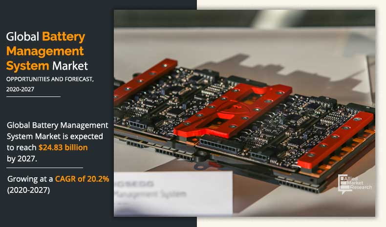 According to a recent report published by Allied Market Research, titled, “Battery Management System Market by Battery Type, Topology, and Application: Opportunity Analysis and Industry Forecast, 2020-2027,” the global battery management system market size was valued at $5.81 billion in 2019, and is projected to reach $24.83 billion by 2027, registering a CAGR of 20.2% from 2020 to 2027.