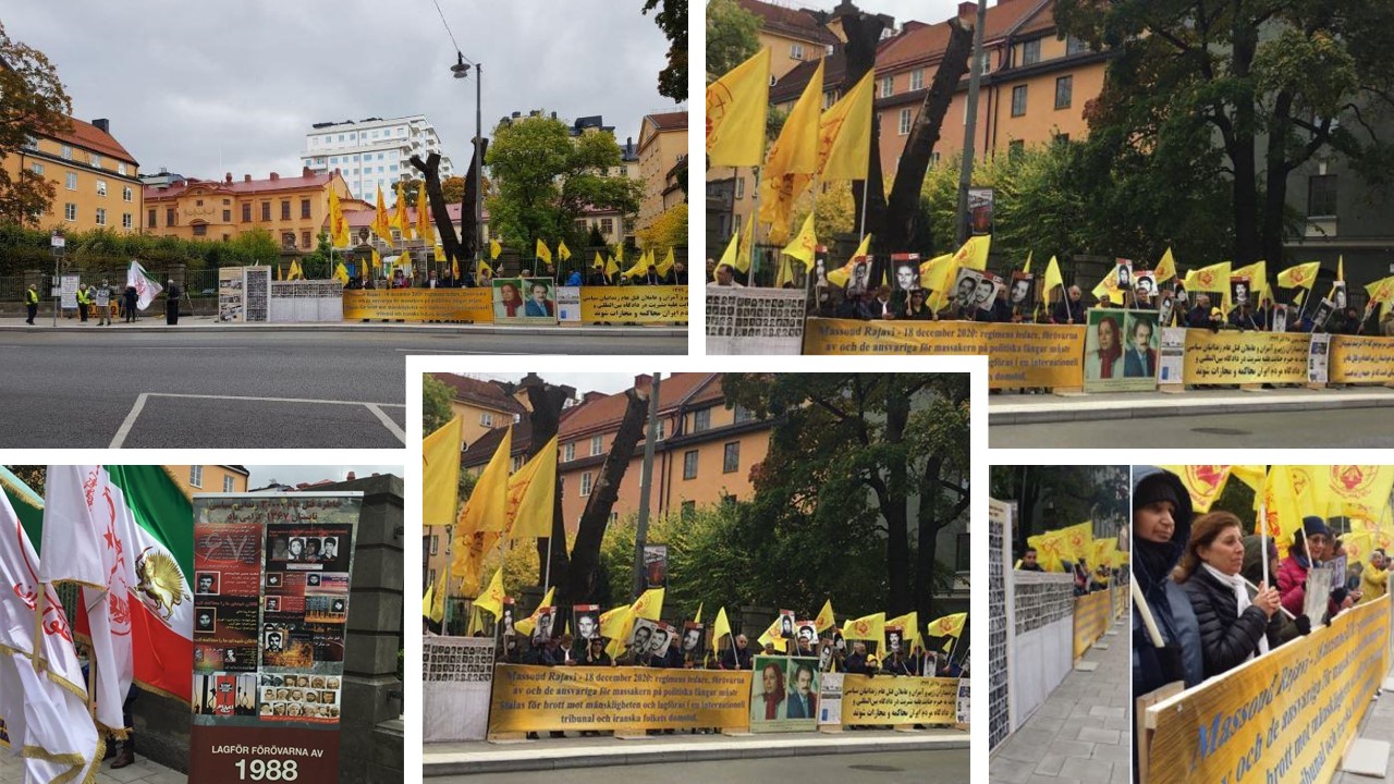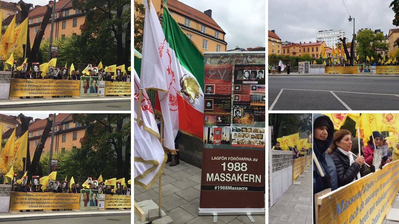 (PMOI / MEK Iran) and (NCRI): former political prisoners, witnesses of the 1988 massacre, and families of the victims made speeches in a gathering outside the Court of Stockholm.
