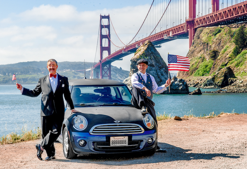 Kevin the Cap explained the historic significance of the tour: “Several scholars told us that we are the first to drive through the continental 48 states & D.C. in a season. From ancient times until the 1940s, entertainers rode on horses, then in wagons, and then cars from town to town, bringing their comedy acts, ventriloquism, gymnastics, dramatic readings, and magic acts to crowds eager for diversion and something different. With the rise of movies nearly a century ago, then aviation, that migratory version of our profession disappeared, and entertainers simply take a plane to their next engagement. We’re both a bit of a throwback, and audiences love it.”