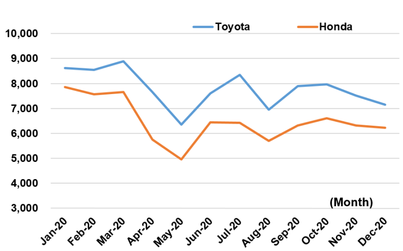 In the second half of 2020, the global economy began to recover from the downturn caused by the COVID-19 pandemic. Compared with Toyota, which saw greater human flow as global demand for automobiles increased, Honda's recovery was slower. It was around this time that Honda, Nissan Motor and other companies began to report production cuts due to semiconductor shortages. In contrast, Toyota rose above the semiconductor shortage problem by improving its supply chain, and it is believed to have been able to maintain its production volume.
