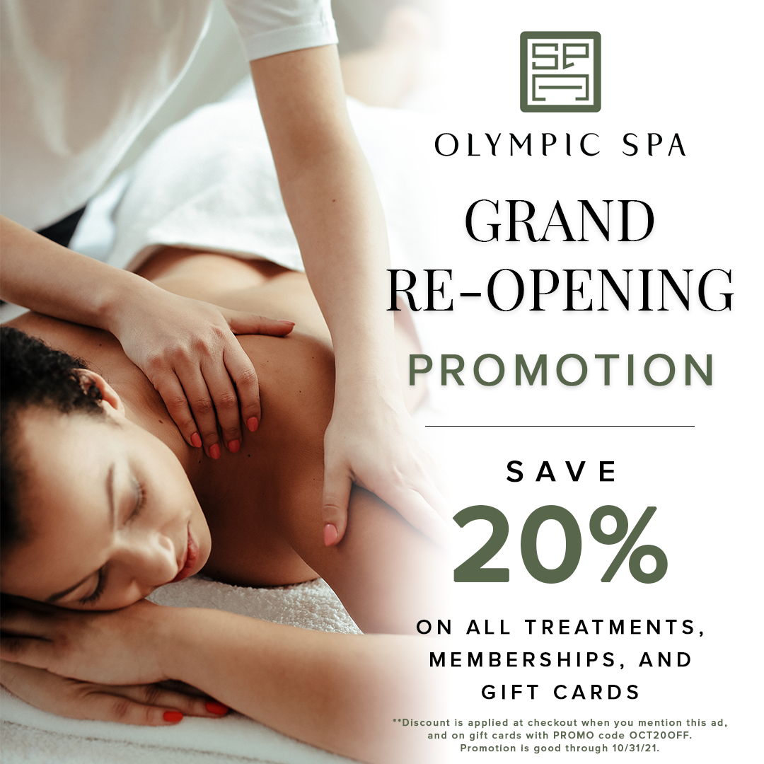 If you have further questions, please call 323-857-0666, email spa@olympicspala.com or visit the website at www.OlympicSpaLA.com. You can also find us on Instagram, Twitter, and Facebook!