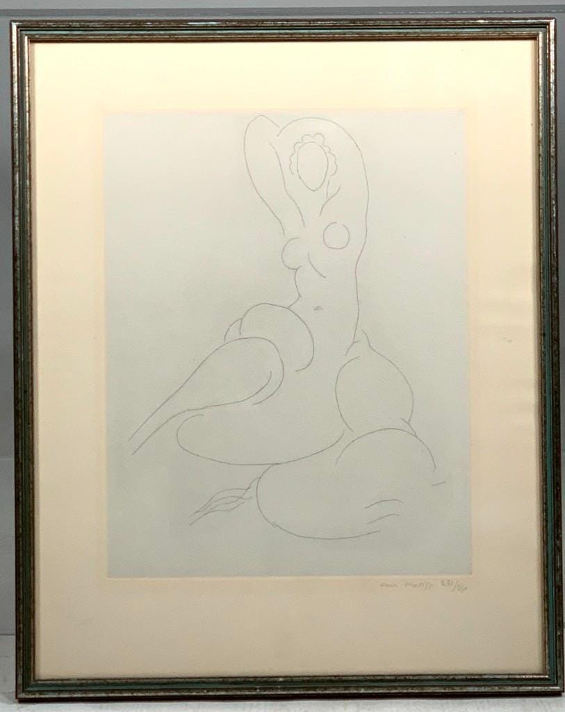 Etching on chine colle by Henri Matisse (French, 1869-1954), titled Nu Pour Cleveland (1932), signed and numbered (“231/250”) ($4,612).