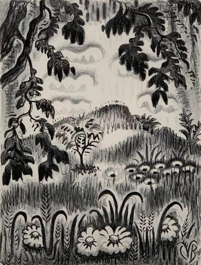 A lithograph on paper by Charles Burchfield (American, 1893-1967), titled Summer Benediction, the Print Club of Cleveland publication #31 for 1953, edition of 250 plus 10, went for $5,228 (a record price for the image); while framed a lithograph on Arches paper by Alberto Giacometti (Swiss, 1901-1966), titled House in Majolica, signed and numbered (“26/65”), rose to $3,690.