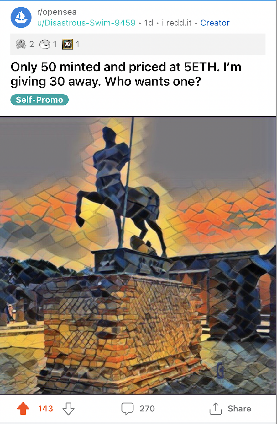 Billionaire NFTs is a multi-faceted brand. Like other NFT efforts, Billionaire NFTs has a presence on OpenSea, the world’s first and largest NFT marketplace, to showcase Palyan’s digital art. Investors can purchase Palyan’s art and hold onto it in their digital collections or choose to sell it at a later time. But in addition to this more traditional approach to engaging in the NFT ecosystem, Palyan also wants to gain wider exposure for his art than his Billionaire NFTs platform gives him. He also gives away approximately 80% of his art to collectors and rising NFT entrepreneurs.
