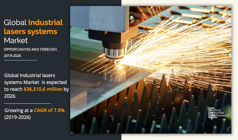 PORTLAND, OR, UNITES STATES, October 25, 2021 /EINPresswire.com/ -- Allied Market Research recently published a report, titled, “INDUSTRIAL LASERS SYSTEMS Market”. The study provides an in-depth analysis of the INDUSTRIAL LASERS SYSTEMS market along with detailed insights on dynamic growth factors, challenges, constraints, and opportunities. The global industrial lasers systems market size was valued at $20.1 billion in 2018, and is projected to reach $36.5 billion by 2026, registering a CAGR of 7.5% from 2019 to 2026.In addition, the report covers the study of major market players along with their recent market strategies to help stakeholders, new market entrants, and shareholders to formulate lucrative business strategies. The report includes a comprehensive study of several profitable strategies adopted by market players such as partnerships, mergers & acquisitions, collaborations, and new product launches to maintain their foothold in the market.