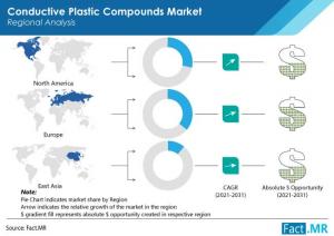 ROCKVILLE, MARYLAND, UNITED STATES, November 2, 2021 /EINPresswire.com/ -- As per the report published by Fact.MR, the conductive plastic compounds market is anticipated to surpass US$ 20.5 billion by the end of 2031, and is poised to expand at a CAGR of around 11% over the next ten years.Conductive plastic compounds having properties such as electrostatic discharge and electromagnetic shielding have elevated the sales of during the past half-decade and is expected to rise during the assessment period.