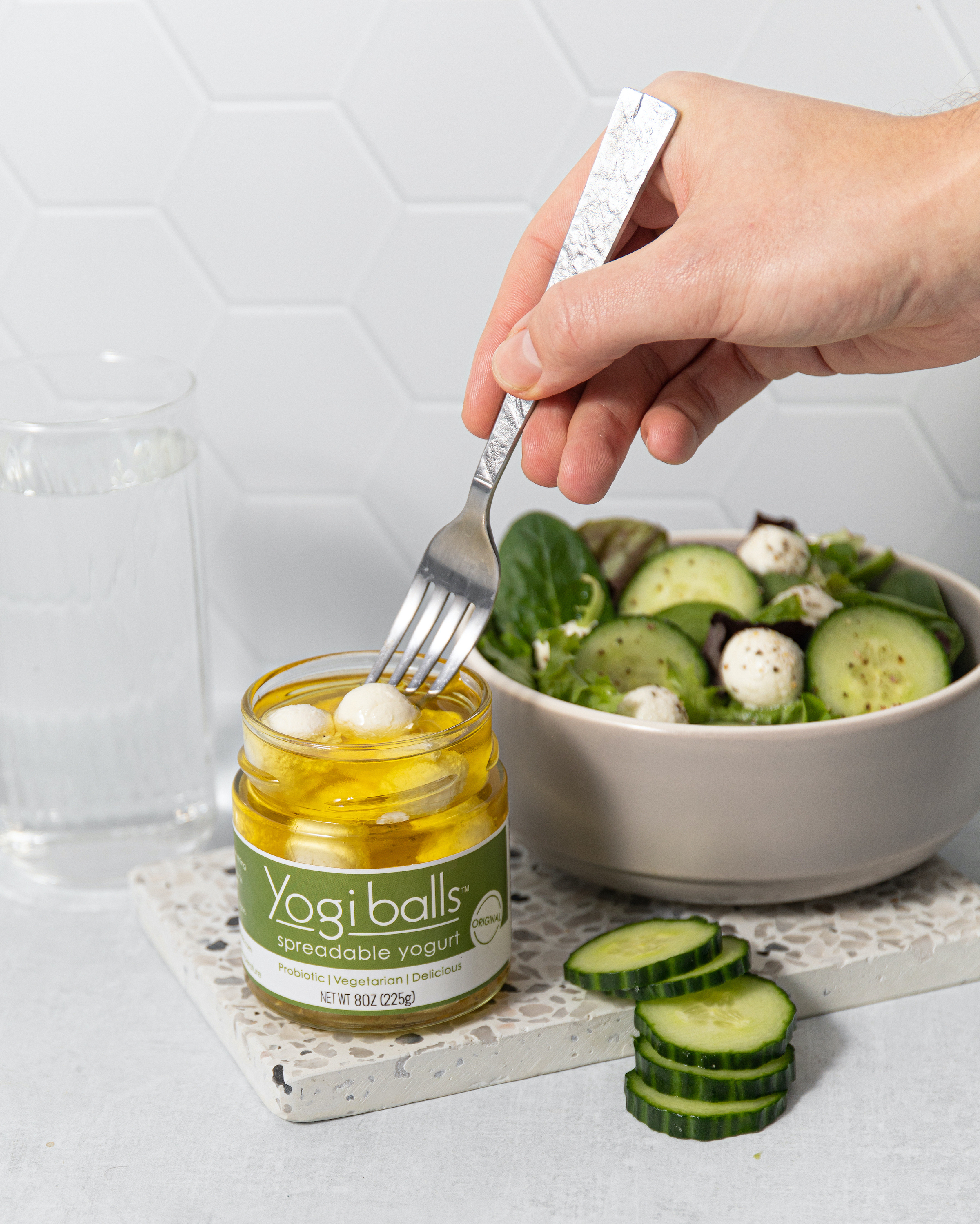 There are many ways to enjoy this creamy, spreadable yogurt snack: served on toast or crackers, as a salad garnish, or simply as an everyday, healthy snack. Similar to cheese, you can serve YogiBalls as part of a grazing board or as an elegant hors d’oeuvre sprinkled with some roasted red pepper flakes.