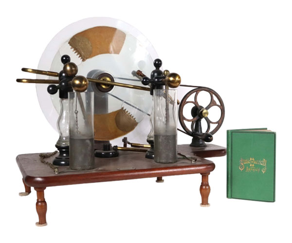 J&H Berge Makers, New York, electrostatic machine, circa 1880, friction static machine in original condition, plus a rare copy of The Treatment of Nervous and Rheumatic Affections by Static Electricity by Dr. A. Arthius, translated from the French by J.H.