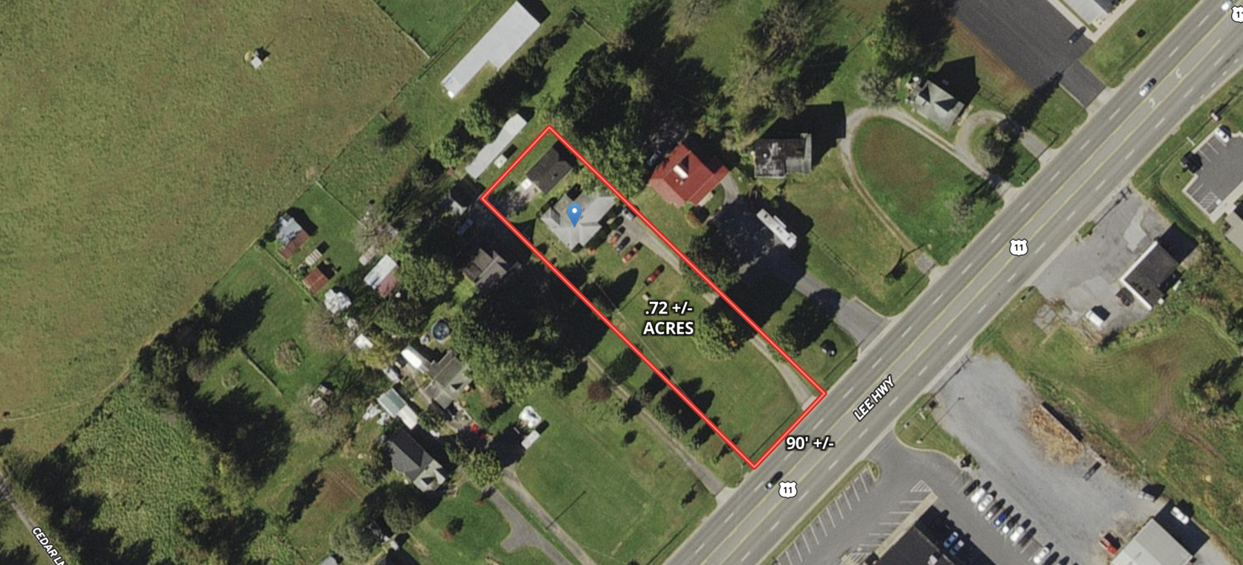 • 90' +/- of frontage on Rt. 11 (Lee Hwy.) in Augusta County, VA
