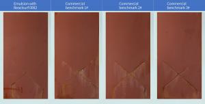 Waterborne epoxy emulsions which incorporate Solvay’s Reactsurf® 0092 exhibit excellent freeze-thaw (F/T) resistance and are still flowable under -10°C (14°F) at up to 5 F/T cycles. Results of salt spray tests (ASTM B-117) on cold steel rolled (CRS) plates coated with epoxy emulsion paint with both high and low pigment volume concentrations (PVC) display a combination of high corrosion resistance, superior wet-adhesion, and no peel off, contrary to test benchmarks. Additional characteristics such as MEK (methylethylketone) Rub Test (ASTM D5264), impact resistance and pendulum hardness are equivalent to conventional waterborne epoxy coatings but with the significant benefit of very low VOCs.