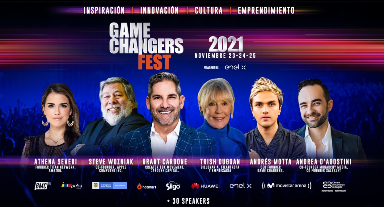 The Game Changers Fest 2021, is an event dedicated to creating inspiration, innovation, culture and entrepreneurship in today's youth. The conference will take place between November 23, 24 and 25 in Bogotá Columbia with the aim of encouraging the country's next generation of entrepreneurs to change their ways of thinking, business habits and driving force behind their ideas.