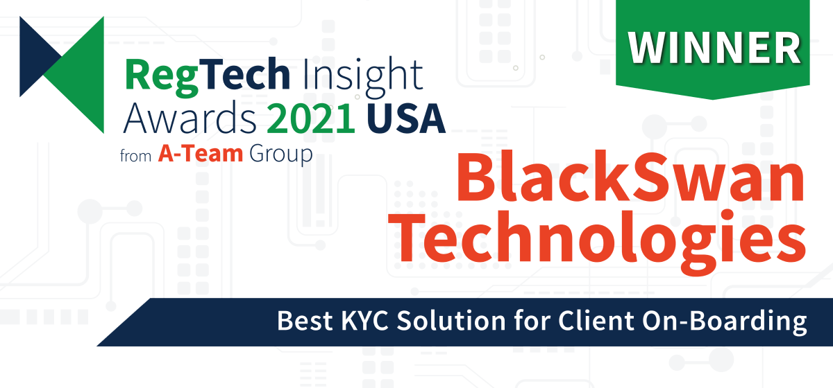 “We are delighted that our RegTech Insight community of over 35,000 senior regtech specialists has voted Blackswan Technologies as the Best KYC Solution for Client On-Boarding in this highly competitive field. Blackswan Technologies has proven themselves to be deserving winners,” said Angela Wilbraham, CEO of A-Team Group, which hosts the prestigious RegTech Insight Awards USA.