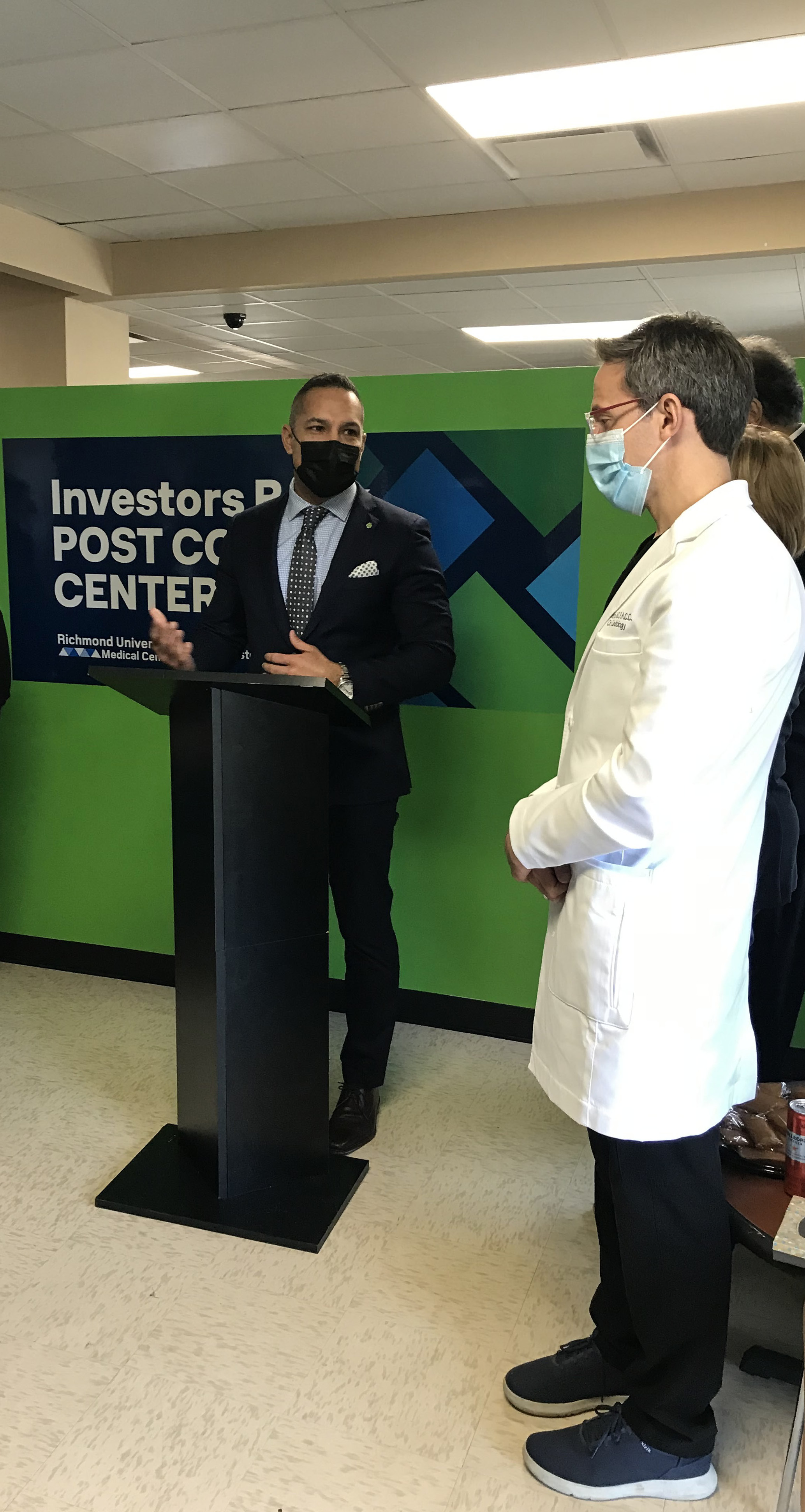 “Richmond University Medical Center is now one of New York City’s most comprehensive COVID-19 care facilities as we provide vaccinations, immediate care for patients diagnosed with the virus, monoclonal antibody treatment and treatment for those who are recovering,” RUMC President and Chief Executive Officer, Daniel J. Messina, PhD, FACHE, said. “I am extremely grateful to our friends at Investors Bank and the Investors Foundation for extending their hands to our patients and joining us on the journey to better care for our neighbors. Their investment in this Post COVID-19 Care Center is indeed an investment in the health of our community.”