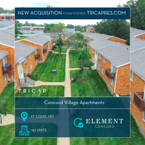 "I'm very excited to enter the St. Louis market with the acquisition of Concord Village," said Chris Apostal, EVP of Acquisitions for Tricap. "Not only is the property extremely well-located in one of the best school districts in the state, but it's also situated within a truly supply-constrained submarket, providing a healthy long-term outlook for future demand and strong rent growth."