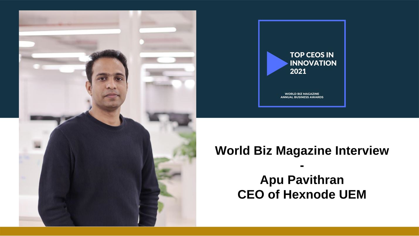 Apu Pavithran, CEO of Hexnode UEM has been announced as a “Top 100 Innovation CEO - 2021” by World Biz Magazine.