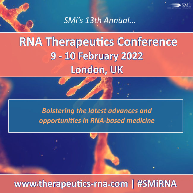 LONDON, NON UNITED STATES OR CANADA, UNITED KINGDOM, December 13, 2021 /EINPresswire.com/ -- SMi’s 13th Annual RNA Therapeutics Conference will welcome expert speakers from big pharma companies to bring together cutting-edge discussions in the developments and challenges in the RNA Therapeutics field. The conference will take place on 9th and 10th February 2022 in London UK – live and in person.