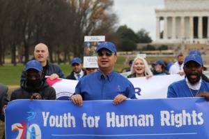Joined by other national and international organizations, including the US Institute for Diplomacy and Human Rights and Voice for Rights International, Youth for Human Rights International led the passionate activists dressed in blue for human rights and holding banners in a march from the Lincoln Memorial to the World War II Memorial in support of the UN Universal Declaration of Human Rights.