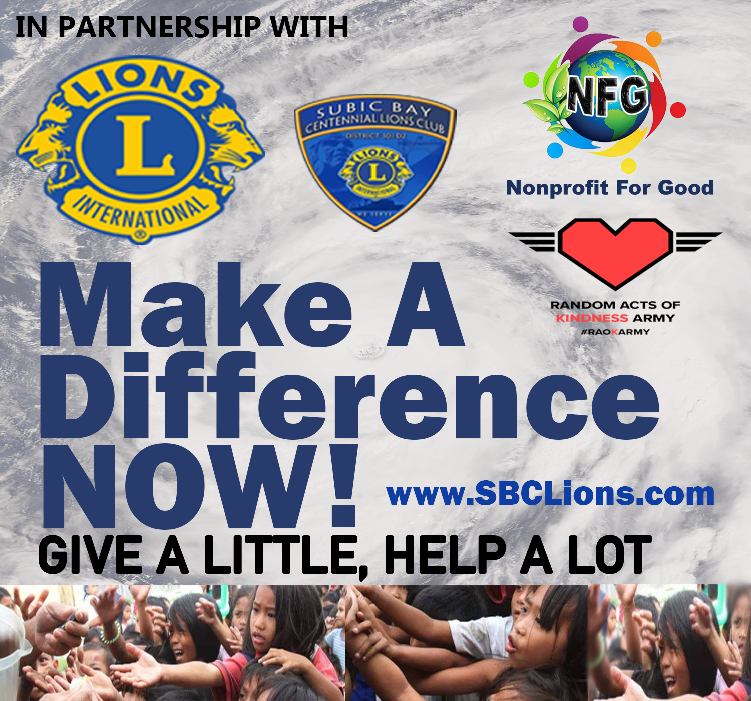 LOS ANGELES, CALIFORNIA, UNITED STATES, December 17, 2021 /EINPresswire.com/ -- The Lions Club International of District 301D2, Subic Bay Centennial seeks your help for victims of Typhoon Odette. The typhoon made landfall at least nine times from December 16 to 17, triggering forced evacuations and leaving swaths of destruction in parts of the Visayas and Mindanao. It also affected power lines, causing blackouts in several areas.In Western Visayas, four deaths in Iloilo and Guimaras were caused by trees that toppled over and crushed homes during the height of the typhoon.