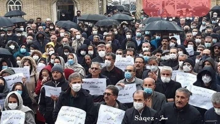 Saqez, Iran, December 23, 2021 - Teachers stage gathering to protest their meager wages, dire living conditions