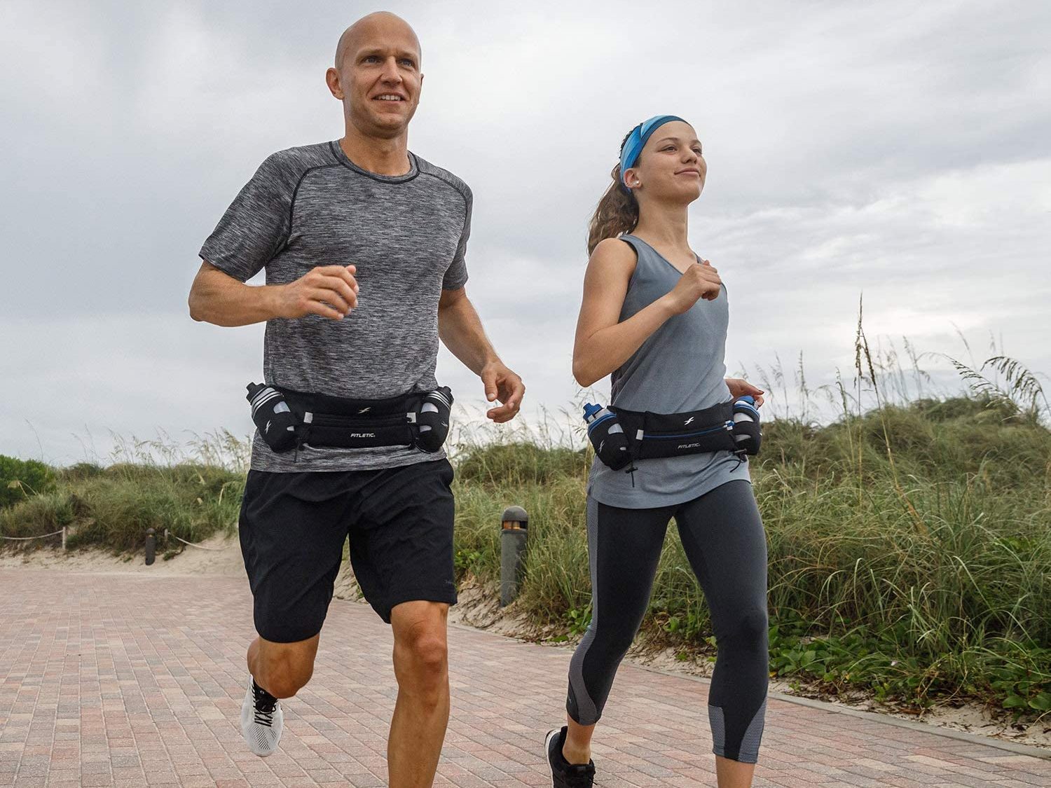 The Nathan Sports Insulated Trail Mix Plus belt is a fantastic option. It includes two 10-ounce insulated Fire and Ice flasks to keep water colder for longer. For convenient one-handed access, the two flasks are housed in their signature Speed Fit holsters. In addition, the water bottles will not freeze in cold temperatures, as their name implies. This belt is comprised of a delicate monofilament material that can be stretched in multiple directions. As a result, there is less bounce and the fit is more ergonomic.