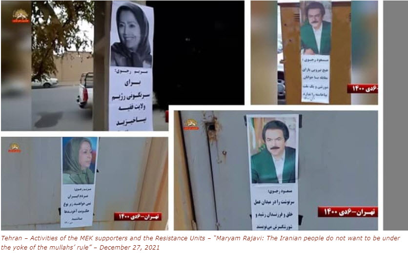 The activities of the Resistance Units and MEK supporters included posting banners, in various parts of Tehran and other cities, including Mashhad, Isfahan, Shiraz, Qazvin, Hamadan, Zanjan, and Yasuj.