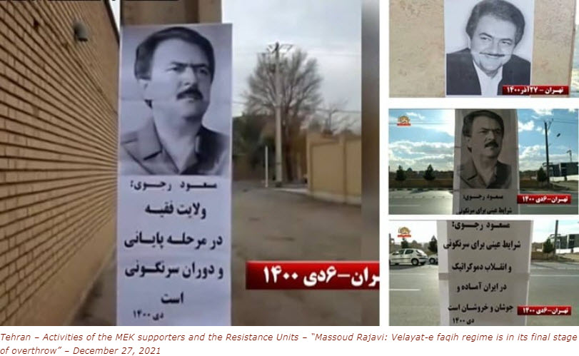 The activities of the Resistance Units and MEK supporters included posting banners, placards, and writing graffiti in various parts of Tehran and other cities,