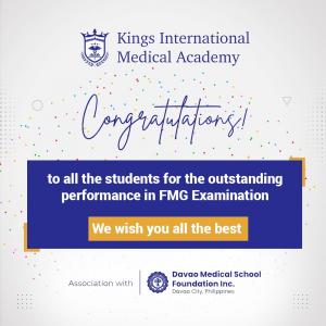 Kings International Medical Academy (KIMA) is closely associated with the top-ranking medical college in Philippines, Davao Medical School Foundation. The pass percentage scored by students from Davao Medical School Foundation in FMGE 2021 is 91.4% while that of all India is around 23.3%.