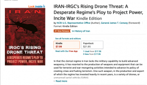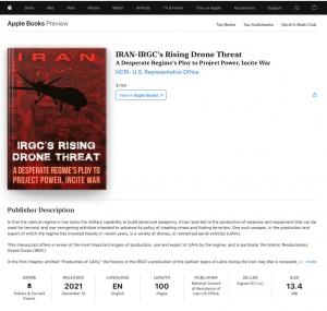 WASHINGTON, DC, UNITED STATES, January 7, 2022 /EINPresswire.com/ -- The newly released book, 'IRAN: IRGC’s Rising Drone Threat – A Desperate Regime’s Ploy to Project Power, Incite War,' is now available, in print and digital formats, on all major book platforms. Quickly ranking as the "#1 New Release" in History of Iran category on Amazon, the book is available online on Barnes and Noble, Apple Books, Books-A-Million, and other major bookstores.