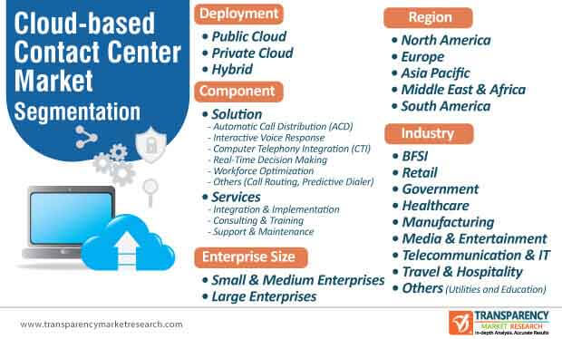 However, the cloud-based contact center market in Asia Pacific is projected to expand at a robust pace during the forecast period. The rapid adoption of cloud technology is observed in Asia Pacific in the past few years. In the region, large enterprises are anticipated to adopt cloud-based contact center solutions at a higher rate during the forecast period. South America and Middle East & Africa are expected to be high growth potential regions of the global cloud-based contact center market during the forecast period.