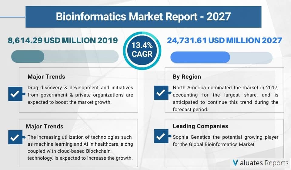 Bioinformatics Market Size to Reach USD 24,731.61 Million by 2027 at a CAGR of 13.4% | Valuates Reports