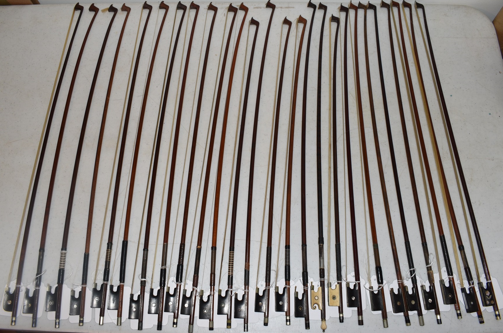 The violin bows will be by makers such as G.A. Moyer, Valoni, E.H. Roth, Voirin, Karl Beck, Karl Herman, Dorfler, Carl Suss, J. Richter, Tubbs, Homa, Weldlich and H.R. Pfretzshner. Other items of interest will include a 1930/40 Air King Model A-600 Catlin/Bakelite radio; Victorian canes; and circa 1960 Mid-Century Modern stork shell sculpture signed Binazzi, 21 inches tall.