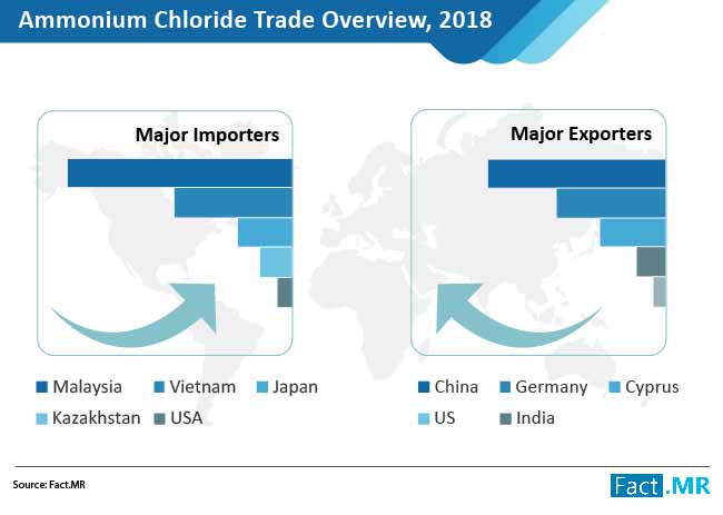 Global ammonium chloride market is highly import-oriented, China is the largest exporter of ammonium chloride, the demand for ammonium chloride in Latin America and MEA is predominantly met through imports only.