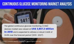 The global continuous glucose monitoring (CGM) devices market was valued at US$ 3,807.3 million in 2018 and is expected to witness a robust CAGR of 24.8% over the forecast period (2019- 2027).