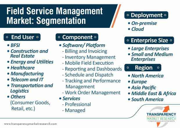 ALBANY , NY, US, January 12, 2022 /EINPresswire.com/ -- Transparency Market Research delivers key insights on the global field service management market. In terms of revenue, the global field service management market is estimated to expand at a CAGR of 13.7% during the forecast period, owing to numerous factors, regarding which TMR offers thorough insights and forecasts in its report on the global field service management market. Field service management (FSM) is the activity of managing a company’s resources, which typically includes dispatching contractors or workers to a location outside the company premises to install, repair, or maintain equipment, assets, or systems.