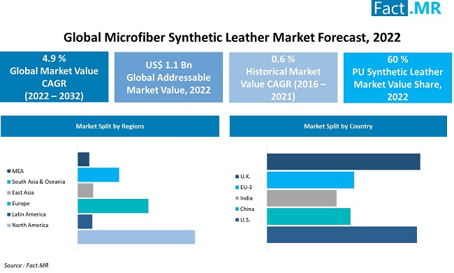 ROCKVILLE, MARYLAND, UNITED STATES, January 13, 2022 /EINPresswire.com/ -- The global microfiber synthetic leather market is expected to grow with a CAGR of 4.9% and estimated to surpass the market value of US$ 1.8 Bn by the end of FY-2032. The microfiber synthetic leather market accounts for around 17% of synthetic leather market, the share of microfiber synthetic leather market is expected to bolster on the back of growing concern and shifting consumer preference for environmental friendly products.The latest industry analysis and survey on Microfiber Synthetic Leather provides sales outlook in 20+ countries, across key categories. Insights and outlook on Microfiber Synthetic Leather market drivers, trends, and influencing factors are also included in the study.