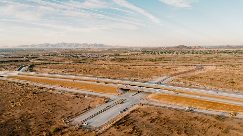 Construction of entrance and exit ramps as part of the Jomax Parkway interchange combined with Peoria’s new roadway provides drivers with another convenient option for traveling between Loop 303 and Vistancia Boulevard.
