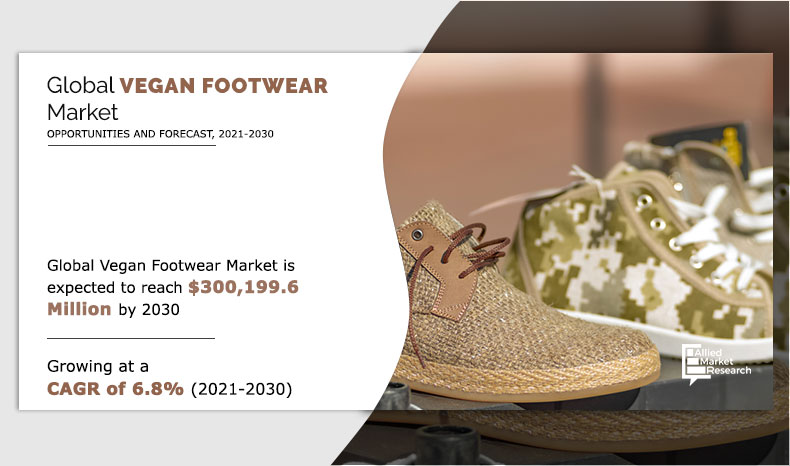PORTLAND, OREGON, UNITED STATES, January 27, 2022 /EINPresswire.com/ -- According to the report published by Allied Market Research, the global vegan footwear market generated $156.89 billion in 2020, and is projected to reach $300.19 billion by 2030, witnessing a CAGR of 6.8% from 2021 to 2030. The report provides a detailed analysis of changing market dynamics, top segments, value chain, key investment pockets, regional scenario, and competitive landscape.